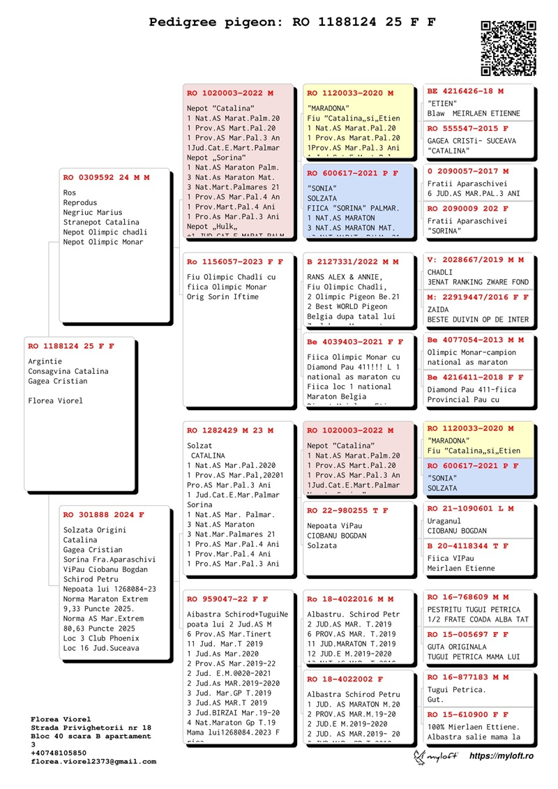 Viorel Florea, a breeder from Suceava, began competing with pigeons in 2020 within the Burdujeni Pigeon Club. He is currently a member of the Phoenix Pigeon Club - Suceava, where he competes with top-quality pigeons, sourced from renowned breeders such as the Gagea brothers, Bogdan Ciobanu, Petru Schirod, and Marius Alexa.