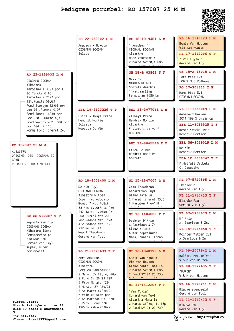 Viorel Florea, a breeder from Suceava, began competing with pigeons in 2020 within the Burdujeni Pigeon Club. He is currently a member of the Phoenix Pigeon Club - Suceava, where he competes with top-quality pigeons, sourced from renowned breeders such as the Gagea brothers, Bogdan Ciobanu, Petru Schirod, and Marius Alexa.