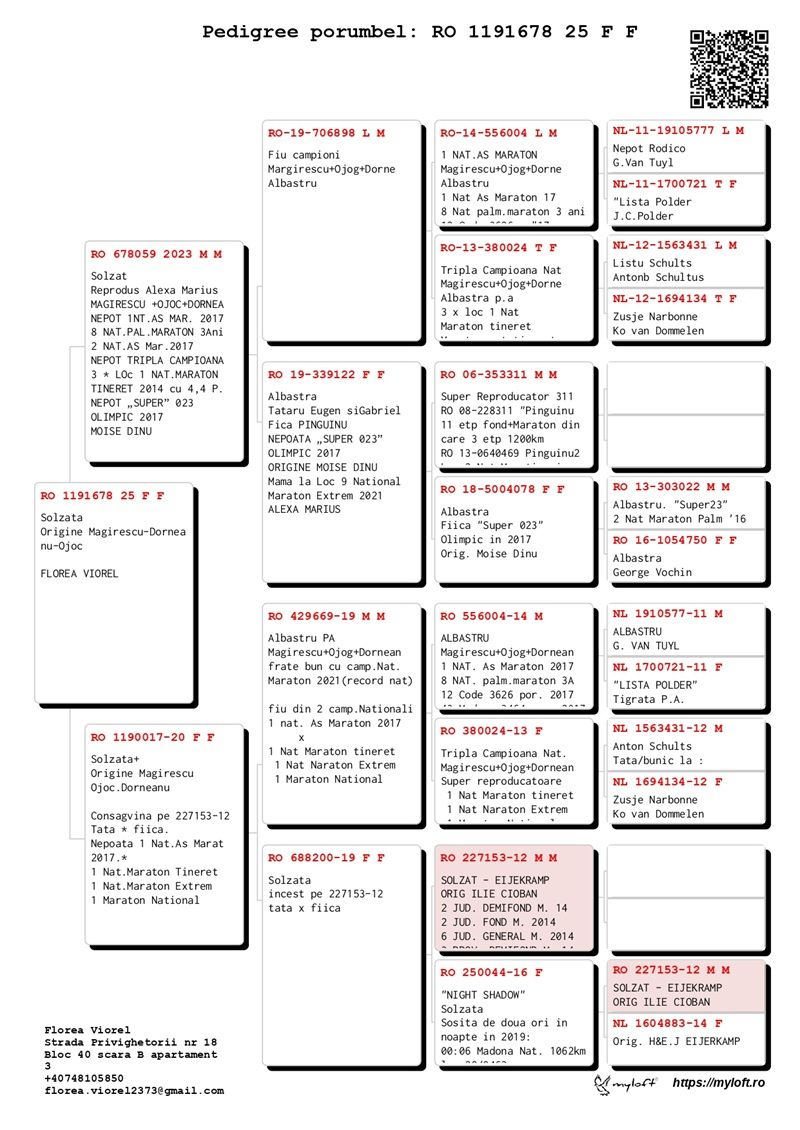 Viorel Florea, a breeder from Suceava, began competing with pigeons in 2020 within the Burdujeni Pigeon Club. He is currently a member of the Phoenix Pigeon Club - Suceava, where he competes with top-quality pigeons, sourced from renowned breeders such as the Gagea brothers, Bogdan Ciobanu, Petru Schirod, and Marius Alexa.
