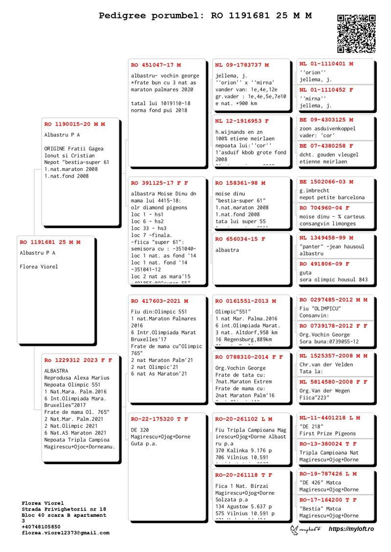 Viorel Florea, a breeder from Suceava, began competing with pigeons in 2020 within the Burdujeni Pigeon Club. He is currently a member of the Phoenix Pigeon Club - Suceava, where he competes with top-quality pigeons, sourced from renowned breeders such as the Gagea brothers, Bogdan Ciobanu, Petru Schirod, and Marius Alexa.
