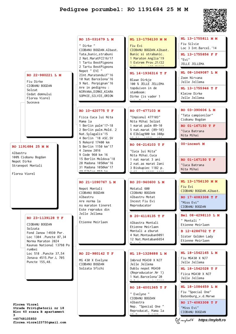 Viorel Florea, a breeder from Suceava, began competing with pigeons in 2020 within the Burdujeni Pigeon Club. He is currently a member of the Phoenix Pigeon Club - Suceava, where he competes with top-quality pigeons, sourced from renowned breeders such as the Gagea brothers, Bogdan Ciobanu, Petru Schirod, and Marius Alexa.