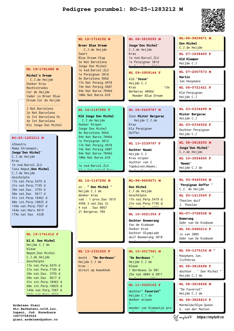 Currently, Mr. Ardelean is offering for sale a group of 12 pigeons with elite origins, destined to carry forward the tradition of success. The results achieved by fanciers who have introduced these pigeons into their lofts confirm their genetic value: