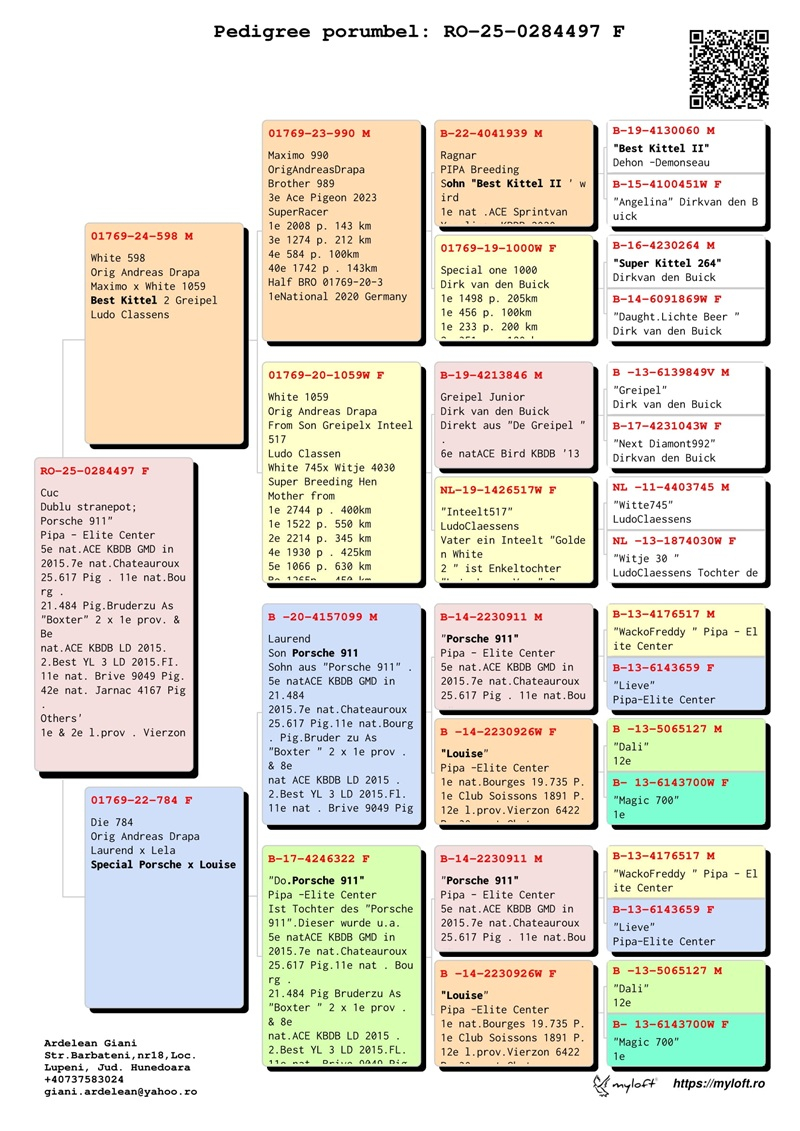 Currently, Mr. Ardelean is offering for sale a group of 12 pigeons with elite origins, destined to carry forward the tradition of success. The results achieved by fanciers who have introduced these pigeons into their lofts confirm their genetic value: