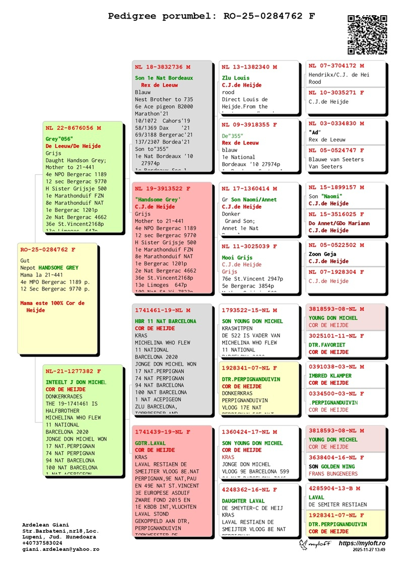 Currently, Mr. Ardelean is offering for sale a group of 12 pigeons with elite origins, destined to carry forward the tradition of success. The results achieved by fanciers who have introduced these pigeons into their lofts confirm their genetic value: