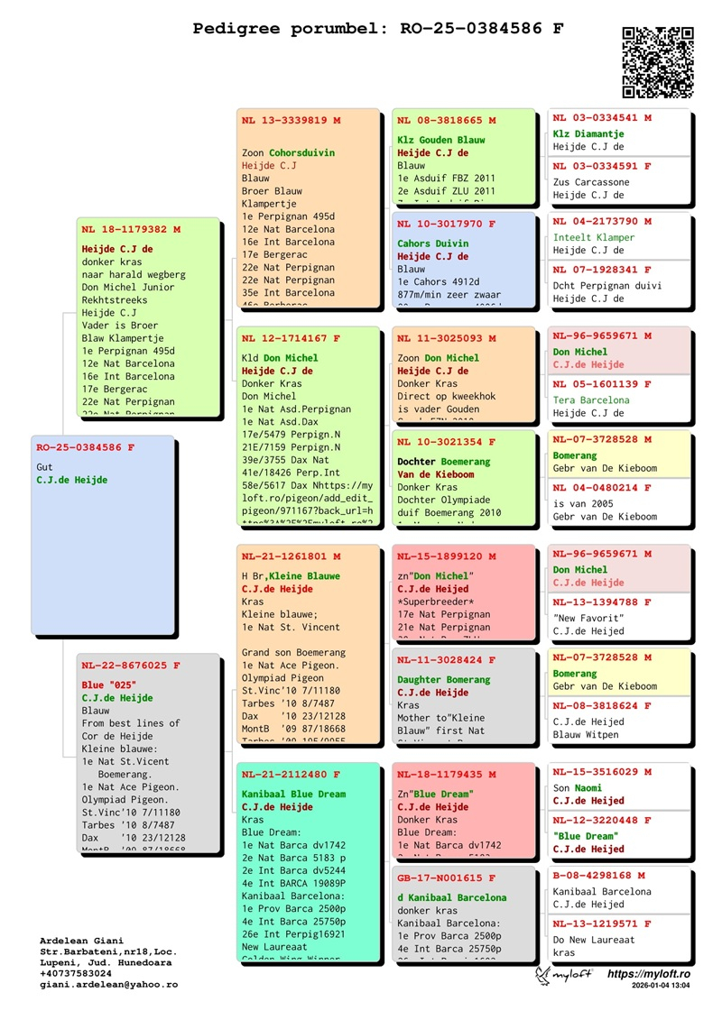 Currently, Mr. Ardelean is offering for sale a group of 12 pigeons with elite origins, destined to carry forward the tradition of success. The results achieved by fanciers who have introduced these pigeons into their lofts confirm their genetic value:
