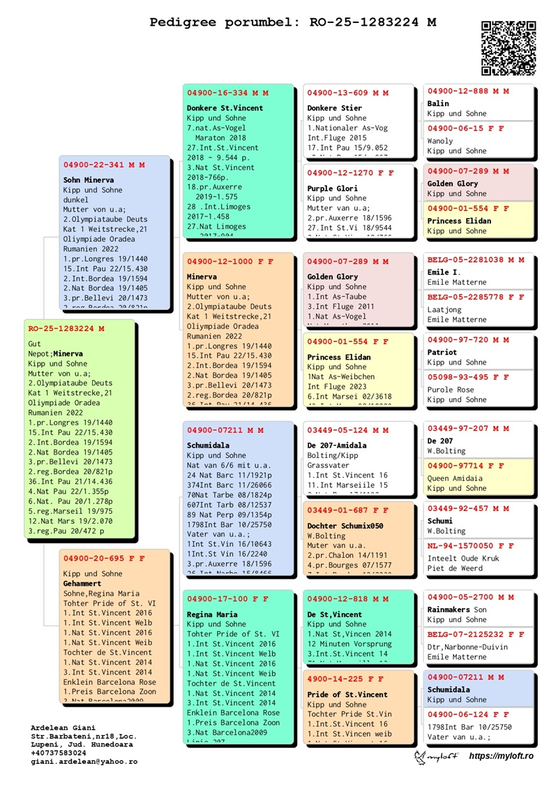 Currently, Mr. Ardelean is offering for sale a group of 12 pigeons with elite origins, destined to carry forward the tradition of success. The results achieved by fanciers who have introduced these pigeons into their lofts confirm their genetic value: