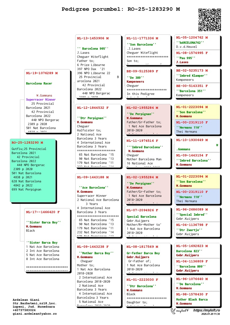 Currently, Mr. Ardelean is offering for sale a group of 12 pigeons with elite origins, destined to carry forward the tradition of success. The results achieved by fanciers who have introduced these pigeons into their lofts confirm their genetic value: