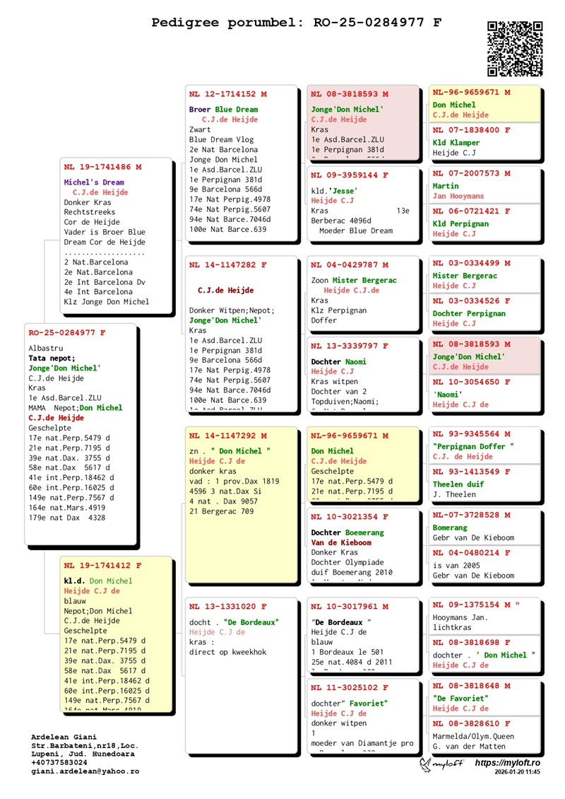 Currently, Mr. Ardelean is offering for sale a group of 12 pigeons with elite origins, destined to carry forward the tradition of success. The results achieved by fanciers who have introduced these pigeons into their lofts confirm their genetic value: