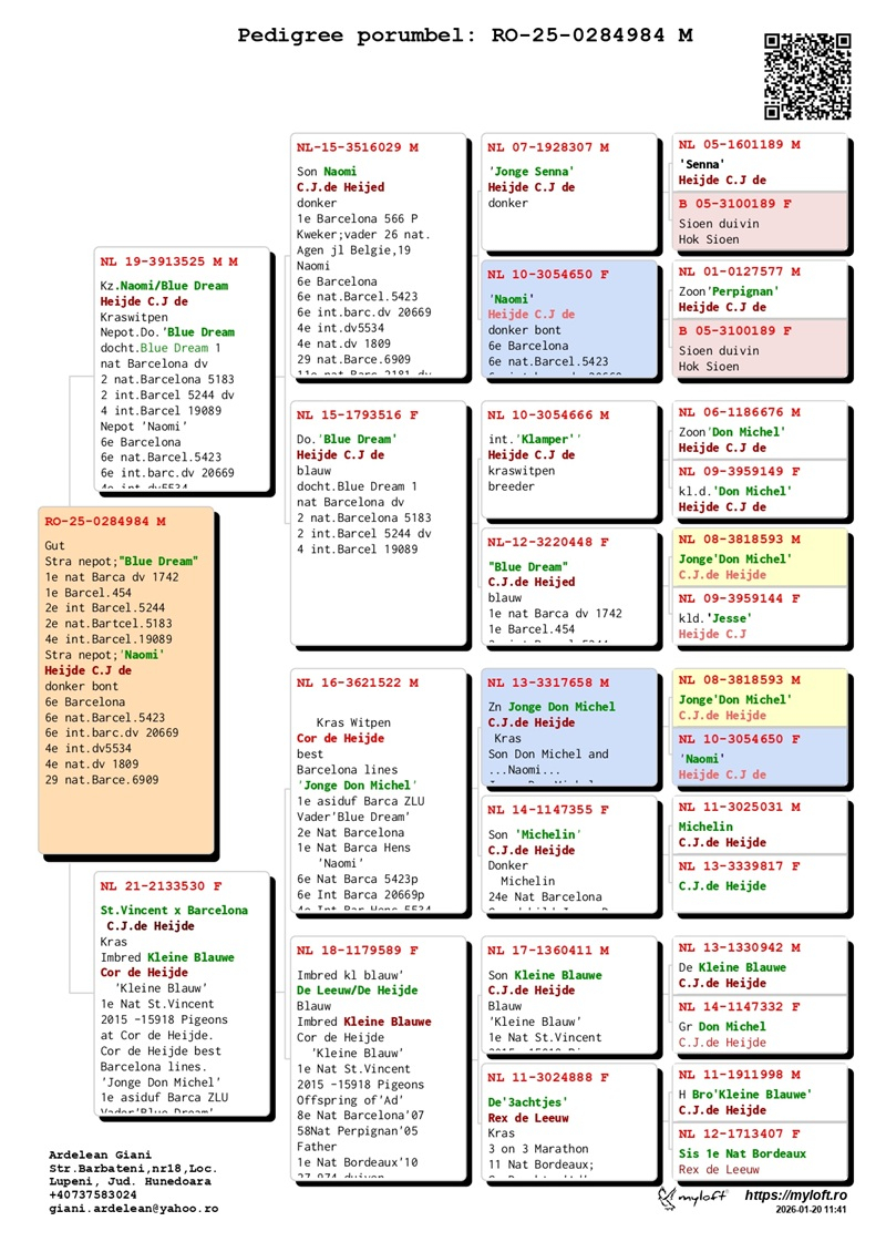 Currently, Mr. Ardelean is offering for sale a group of 12 pigeons with elite origins, destined to carry forward the tradition of success. The results achieved by fanciers who have introduced these pigeons into their lofts confirm their genetic value: