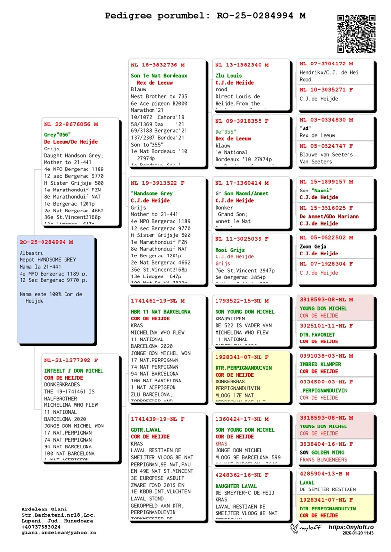 Currently, Mr. Ardelean is offering for sale a group of 12 pigeons with elite origins, destined to carry forward the tradition of success. The results achieved by fanciers who have introduced these pigeons into their lofts confirm their genetic value: