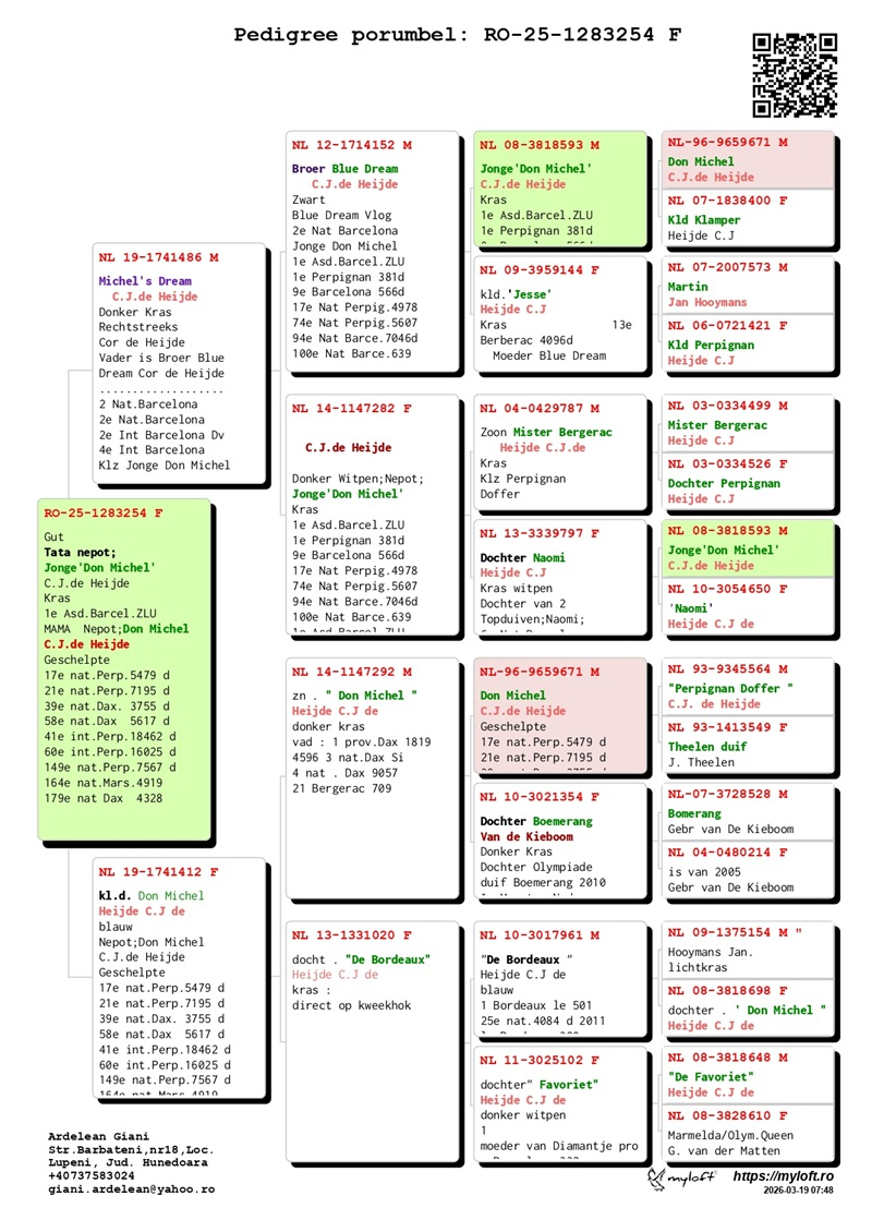 Currently, Mr. Ardelean is offering for sale a group of 12 pigeons with elite origins, destined to carry forward the tradition of success. The results achieved by fanciers who have introduced these pigeons into their lofts confirm their genetic value: