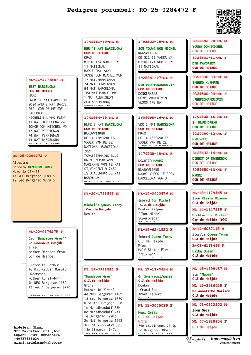 Currently, Mr. Ardelean is offering for sale a group of 12 pigeons with elite origins, destined to carry forward the tradition of success. The results achieved by fanciers who have introduced these pigeons into their lofts confirm their genetic value: