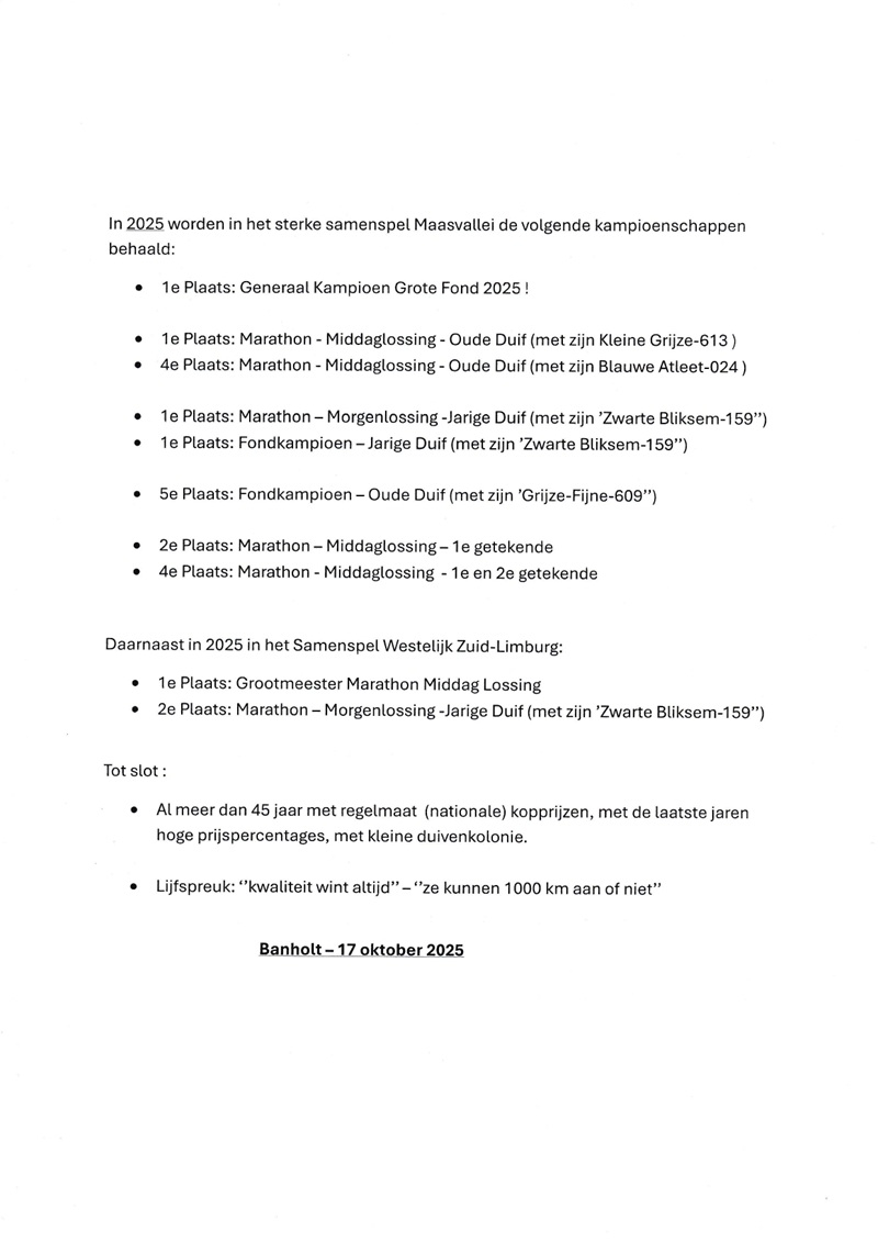 The most renowned breeders in Germany have positively responded to the invitation extended by Hugo Kipp and Wolfgang Thomann, donating young pigeons of exceptional quality.