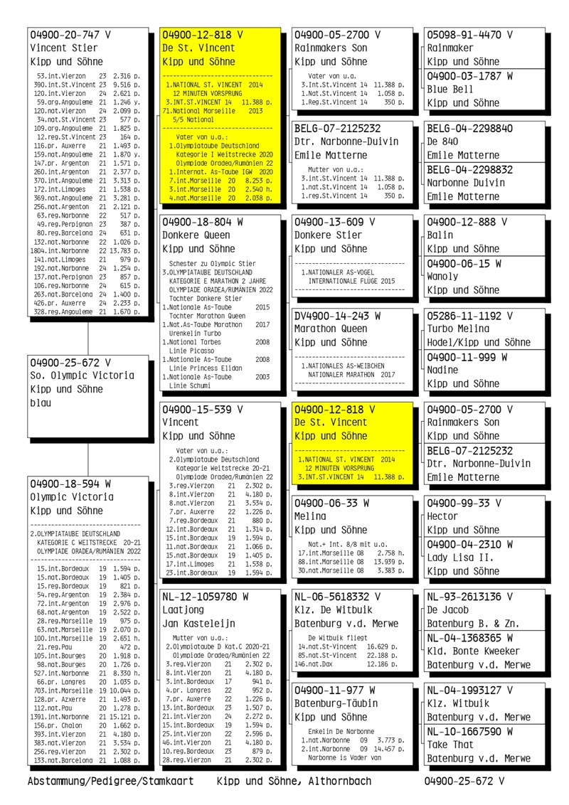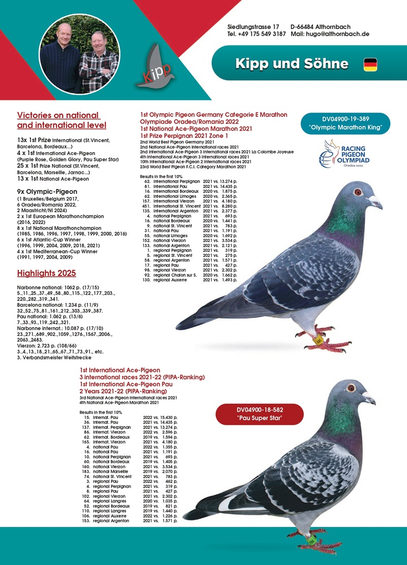 The most renowned breeders in Germany have positively responded to the invitation extended by Hugo Kipp and Wolfgang Thomann, donating young pigeons of exceptional quality.