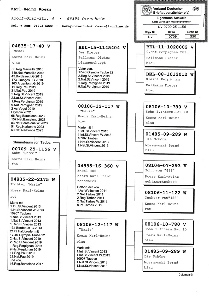 The most renowned breeders in Germany have positively responded to the invitation extended by Hugo Kipp and Wolfgang Thomann, donating young pigeons of exceptional quality.