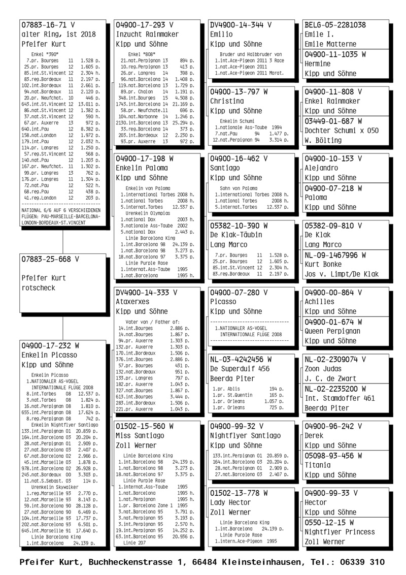The most renowned breeders in Germany have positively responded to the invitation extended by Hugo Kipp and Wolfgang Thomann, donating young pigeons of exceptional quality.