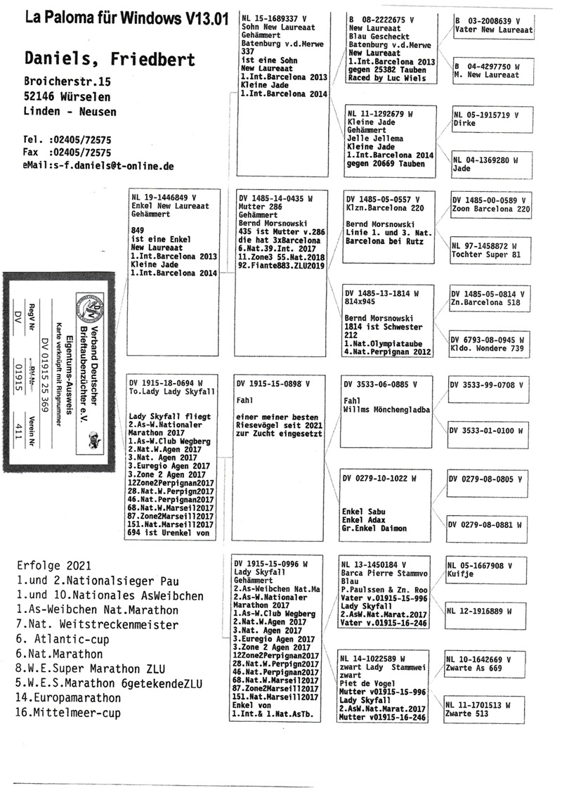 The most renowned breeders in Germany have positively responded to the invitation extended by Hugo Kipp and Wolfgang Thomann, donating young pigeons of exceptional quality.
