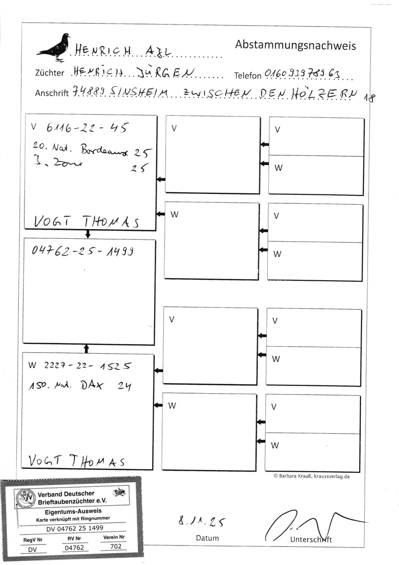 The most renowned breeders in Germany have positively responded to the invitation extended by Hugo Kipp and Wolfgang Thomann, donating young pigeons of exceptional quality.