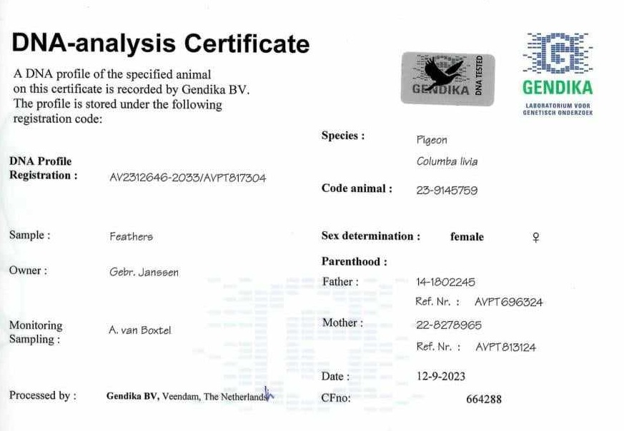 The loft consists exclusively of pigeons descending from proven, well-established bloodlines, tested both nationally and internationally, acquired from top fanciers in Romania and Western Europe, such as Fratii Tătaru, Bogdan Sorin, Cristi Stan, Eacobuta Elisei, Rans Jeroen & Stijn, Comb. Werweij–de Haan, Boian & Panescu Tavi. These pigeons have consistently demonstrated exceptional endurance and performance in races of 800–1000 km, often under challenging conditions.