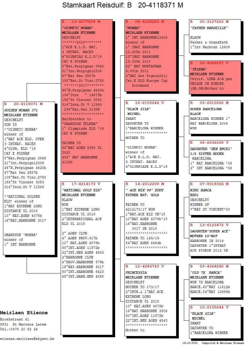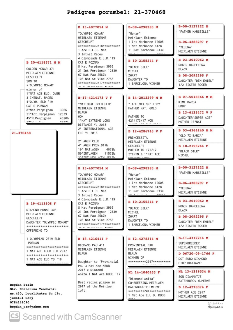 The loft consists exclusively of pigeons descending from proven, well-established bloodlines, tested both nationally and internationally, acquired from top fanciers in Romania and Western Europe, such as Fratii Tătaru, Bogdan Sorin, Cristi Stan, Eacobuta Elisei, Rans Jeroen & Stijn, Comb. Werweij–de Haan, Boian & Panescu Tavi. These pigeons have consistently demonstrated exceptional endurance and performance in races of 800–1000 km, often under challenging conditions.