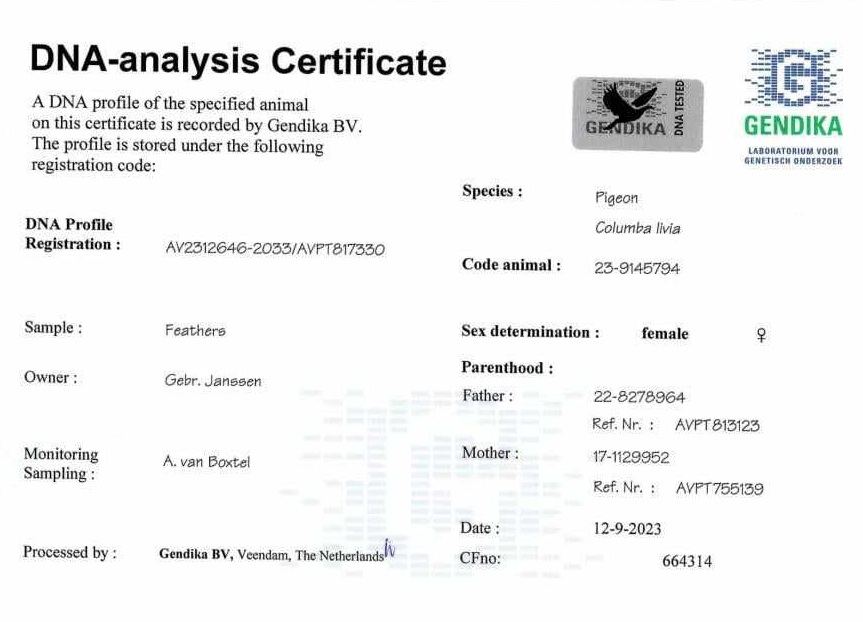 The loft consists exclusively of pigeons descending from proven, well-established bloodlines, tested both nationally and internationally, acquired from top fanciers in Romania and Western Europe, such as Fratii Tătaru, Bogdan Sorin, Cristi Stan, Eacobuta Elisei, Rans Jeroen & Stijn, Comb. Werweij–de Haan, Boian & Panescu Tavi. These pigeons have consistently demonstrated exceptional endurance and performance in races of 800–1000 km, often under challenging conditions.