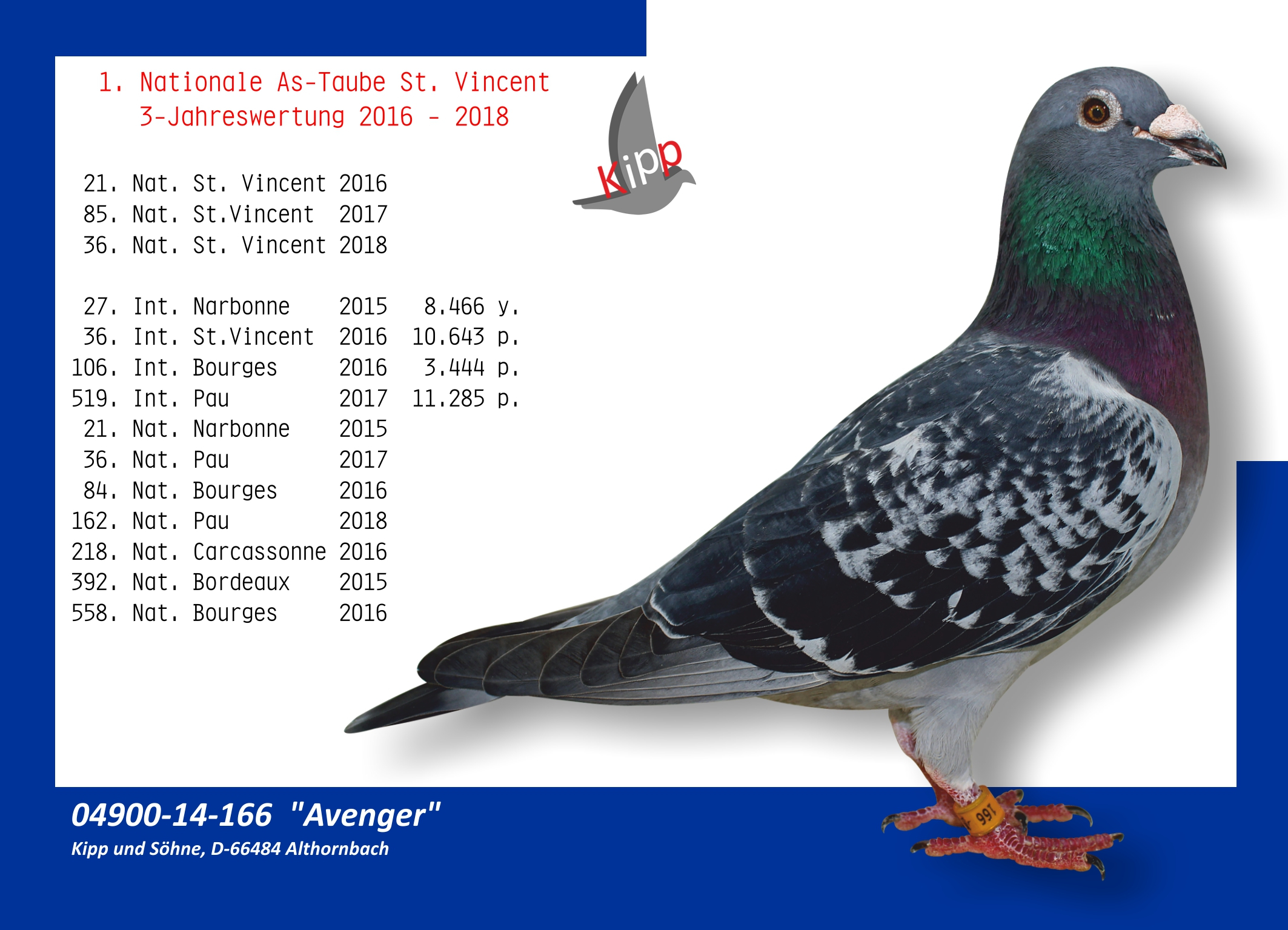 In the world of marathon pigeon racing, Kipp und Söhne is a benchmark for superior quality. In Germany, becoming a national marathon champion means competing against this illustrious family. With an impressive tradition of over 40 years and an unparalleled track record, Kipp und Söhne is recognized as one of the strongest families in international pigeon racing.