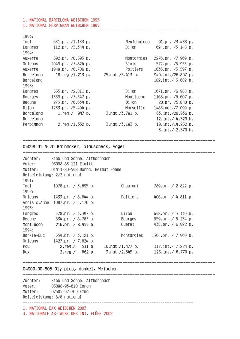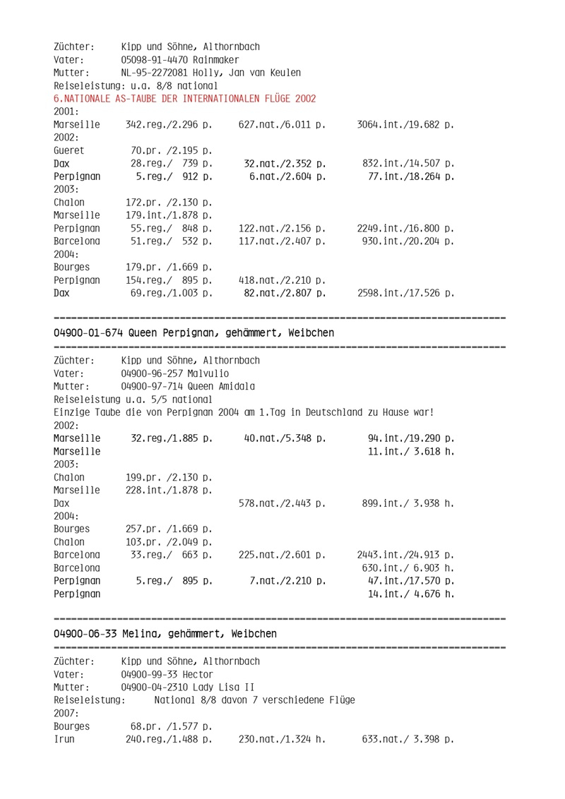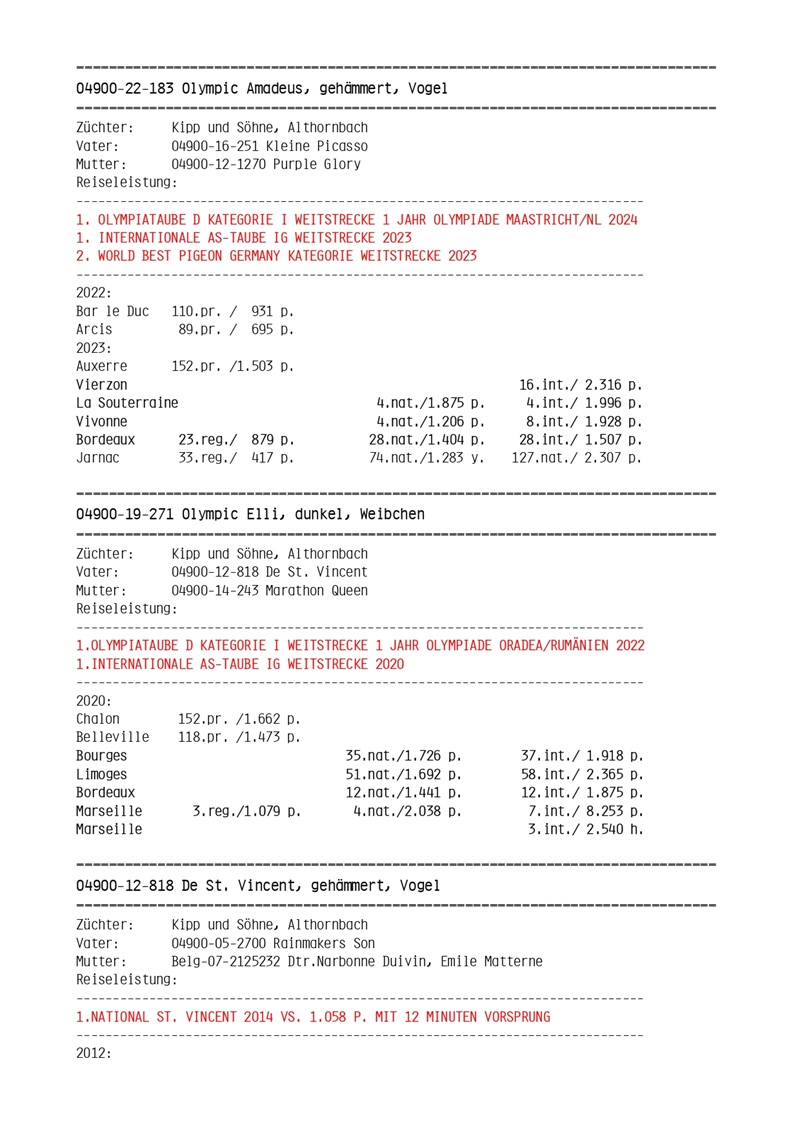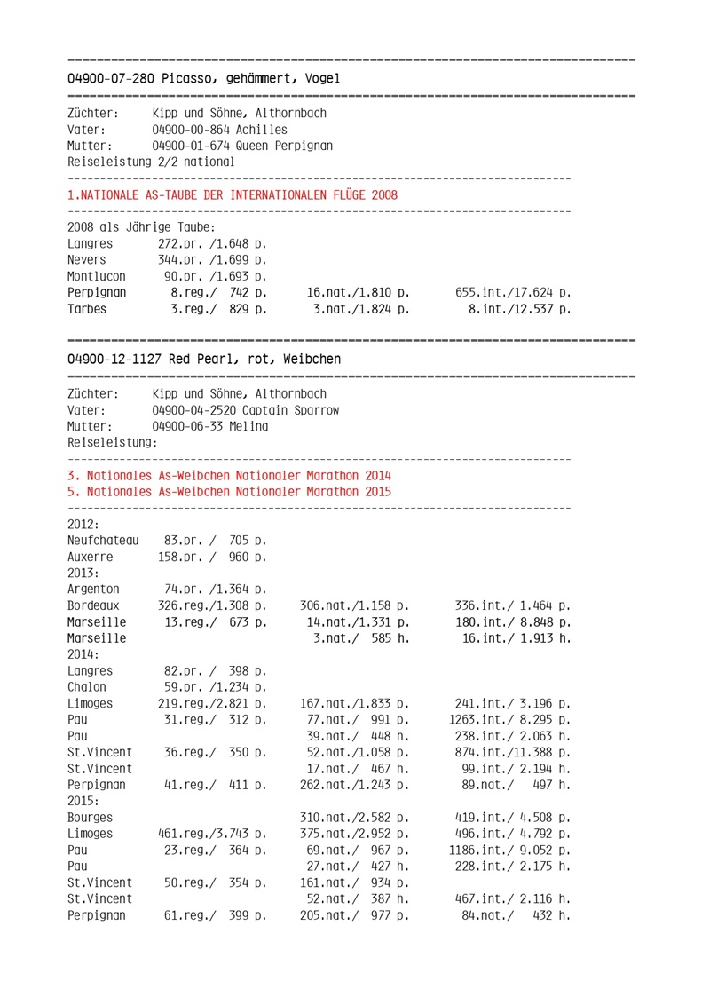 In the world of marathon pigeon racing, Kipp und Söhne is a benchmark for superior quality. In Germany, becoming a national marathon champion means competing against this illustrious family. With an impressive tradition of over 40 years and an unparalleled track record, Kipp und Söhne is recognized as one of the strongest families in international pigeon racing.