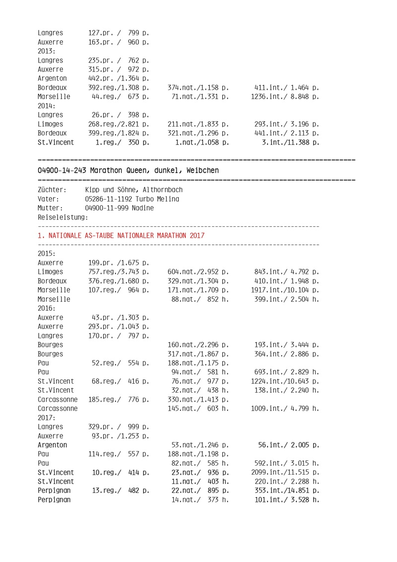 • 1st place in the International IG Weitstrecke Ranking.