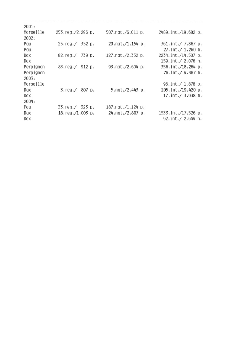 • 22 national victories (Barcelona, St. Vincent, Marseille).