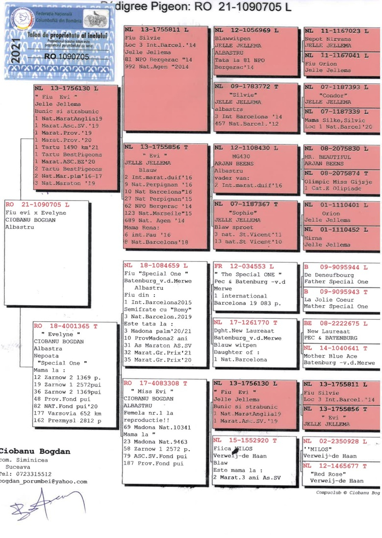 Regarding his future vision, Lazăr Daniel aims to consolidate several foundational families within his loft, built around those males and females that have shown not only individual performances but consistent results over multiple marathon seasons. His breeding philosophy is centered on durability, character, and the transmission of genetic value, rather than on fleeting successes. His ultimate goal is to create an ideal type of marathon pigeon — balanced, intelligent, resilient, and with an exceptional capacity for recovery — the product of rigorous selection and a harmonious blend of the Jellema, Ko Van Dommelen, Bungeneers, Saarlos, N. Peiren, and N. Paesen bloodlines.