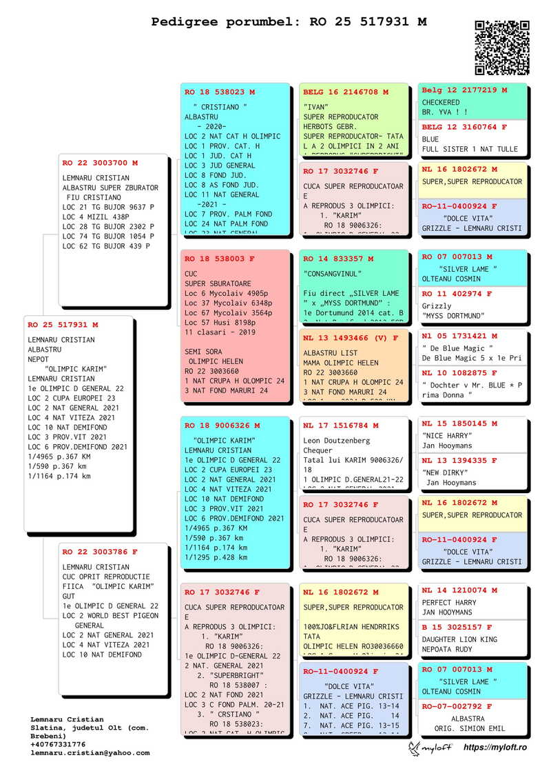 These results reflect Cristian Lemnaru's outstanding achievements in pigeon racing, establishing him as a key figure in both national and international competitions.