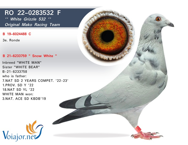 • 1st place in Hot Spot 115 km and 1st place in the Derby Extra Final 500 km, with the same pigeon;
