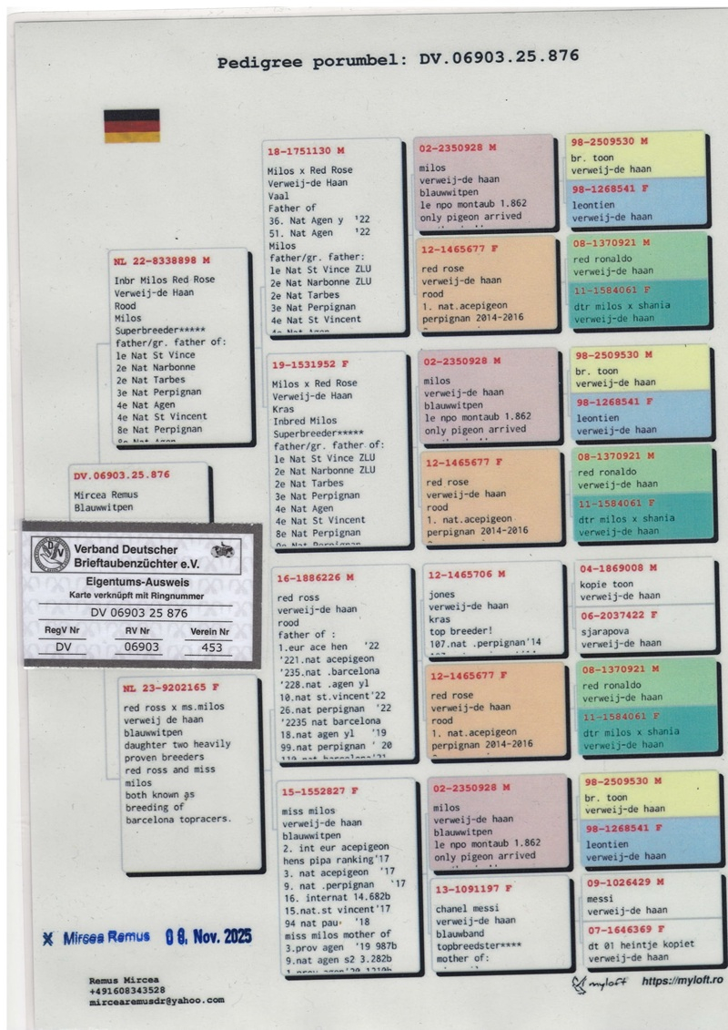 Born in Romania and shaped within Germany’s highly competitive pigeon racing environment, Mircea Remus understood from the very beginning that lasting performance in this sport is not a matter of luck, but the result of intelligent investments and strategic consistency. He recognized that genetic quality is the foundation of all great results and therefore chose to invest in elite specimens acquired from internationally renowned breeders.