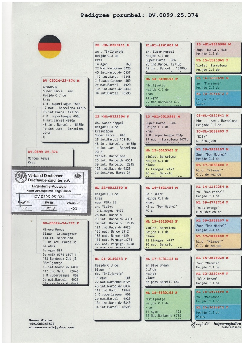 Today, for the first time, Mircea Remus offers Romanian breeders the opportunity to acquire direct descendants from some of Europe’s most prestigious bloodlines, including pigeons from Cor de Heijde and Verweij & Peter de Haan. This initiative represents a rare opportunity for Romanian pigeon enthusiasts to access top-tier genetics and strengthen their own breeding programs at a European competitive level.