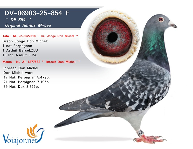 The selection of birds has been carried out with utmost precision, each specimen being chosen for its valuable pedigree and exceptional race record. Among these outstanding bloodlines are descendants of legendary pigeons such as “Jonge Don Michel”, “Marianne”, “Diamantje”, “Smaragd”, “Milos”, “Miss Milos” and “de Kleine Blauwe”. Together, these pigeons form one of the most solid breeding foundations ever established by a Romanian fancier abroad.