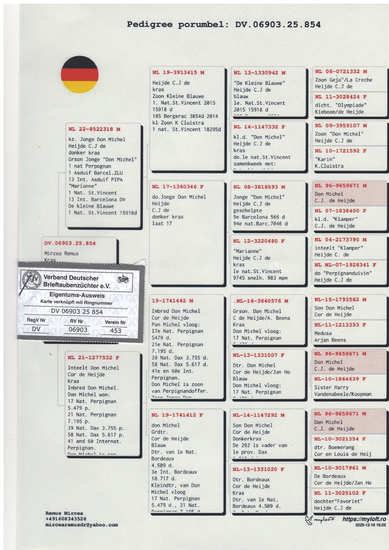 Born in Romania and shaped within Germany’s highly competitive pigeon racing environment, Mircea Remus understood from the very beginning that lasting performance in this sport is not a matter of luck, but the result of intelligent investments and strategic consistency. He recognized that genetic quality is the foundation of all great results and therefore chose to invest in elite specimens acquired from internationally renowned breeders.