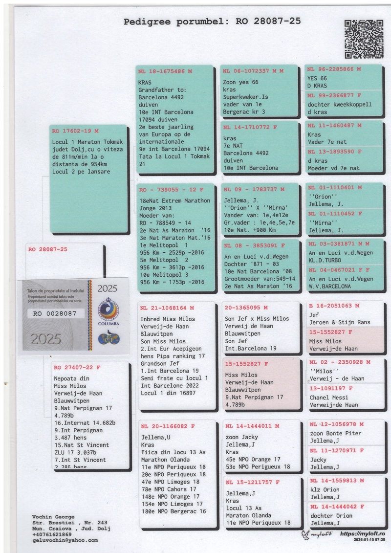 Regardless of the type of races – whether speed or marathon – Vochin demonstrates exceptional skill, establishing himself as a complete breeder and elevating the sport of pigeon racing to an art form, even in diametrically opposed categories.