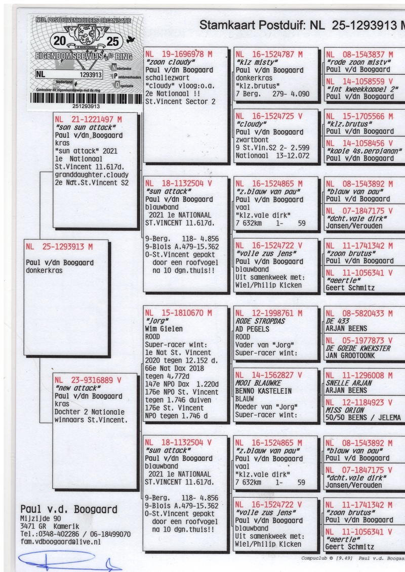 Although he maintains a relatively small group of pigeons, Paul van den Boogaard usually enters no more than five pigeons in each national competition. Nonetheless, in 2021, he achieved a remarkable feat by winning the international race from St. Vincent. This success not only solidified his reputation but also highlighted his expertise in high-level competitions, showcasing the mastery he has accumulated over decades of pigeon racing.