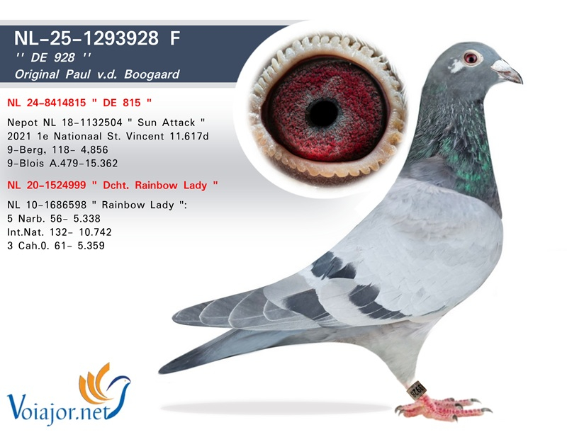 A special chapter is written by Misty, crowned Ace Pigeon in multi-day long-distance races (NPO 2004), once again confirming the extraordinary value of this exceptional bloodline.