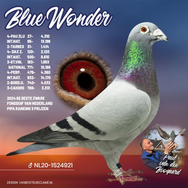 A true masterpiece of his breeding strategy – built around Pair 1 and Pair 2 – is the legendary “Super Perpignan”, regarded by Paul as the very best pigeon ever produced in his loft. His descendants perform exceptionally well, both in breeding lofts and in competition, not only for Paul himself but also for many top fanciers worldwide. A perfect example is SuperBob, bred by Bob Janssen from a son of Super Perpignan and the renowned Blauw van Pau.