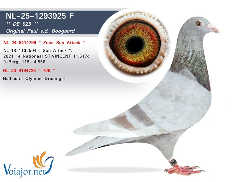 Another outstanding name is Sun Attack, winner of 1st National St. Vincent 2021, clocking as the fastest of 11,617 pigeons. Sun Attack also carries the famous bloodlines of Pair 1 and Pair 2. His grandfather is Blauw van Pau, who is therefore also the grandfather of SuperBob. The mother of Sun Attack was bred from Zoon Brutus x Geertje, a joint breeding project by Wiel and Philip Kicken.
