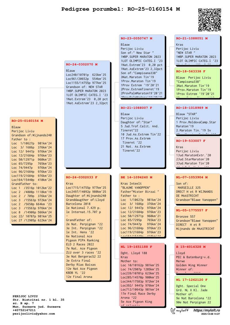 These results highlight Liviu Perijoc's long-standing consistency and success in national and provincial pigeon racing competitions, solidifying his status as an elite breeder in the extreme marathon categories.