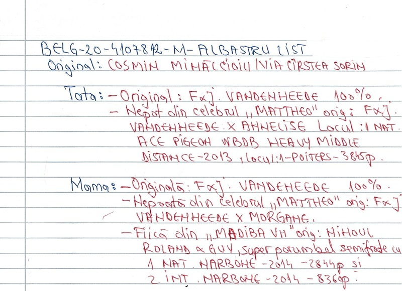 Within his lofts can be found pigeons descending from elite bloodlines, acquired from renowned fanciers both in Romania and abroad. His collaborations include distinguished members of the Professional Pigeon Fanciers Union of Romania (UCPR) and the National Federation of Pigeon Fanciers of Romania (FNCPR). Among the valuable sources of genetic material are esteemed breeders such as Cristea Sorin, Deftu Robert, Cazacu Alexandru, Botnar Ștefan, Vochin George, Tănase Ionuț, Vartolomei Florin, Melinche Iulian, Chelaru Cristinel, Bogdan Sorin, Fr. Ungureanu, Moldovan Teofil Ioan, Cătălin Antofie, Postelnicu Mihai, as well as the Bodor Family, laureates of international pigeon Olympiads.