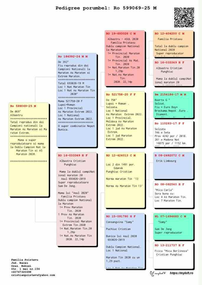 The year 2020 marked a milestone in the Pristavu family’s record, as they achieved double National Champion titles in the Young Marathon and Young Ace Marathon categories, with an exceptional score of 22.14 points—a record that confirms the remarkable quality of their loft.
