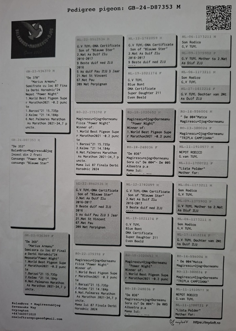 The year 2020 marked a milestone in the Pristavu family’s record, as they achieved double National Champion titles in the Young Marathon and Young Ace Marathon categories, with an exceptional score of 22.14 points—a record that confirms the remarkable quality of their loft.