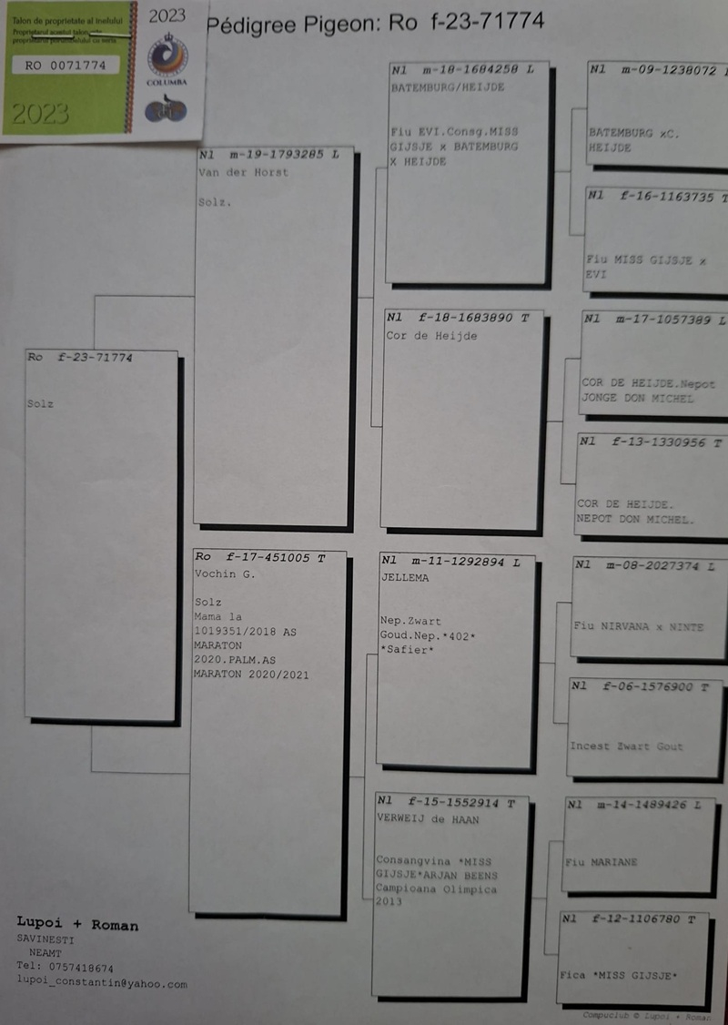 The year 2020 marked a milestone in the Pristavu family’s record, as they achieved double National Champion titles in the Young Marathon and Young Ace Marathon categories, with an exceptional score of 22.14 points—a record that confirms the remarkable quality of their loft.