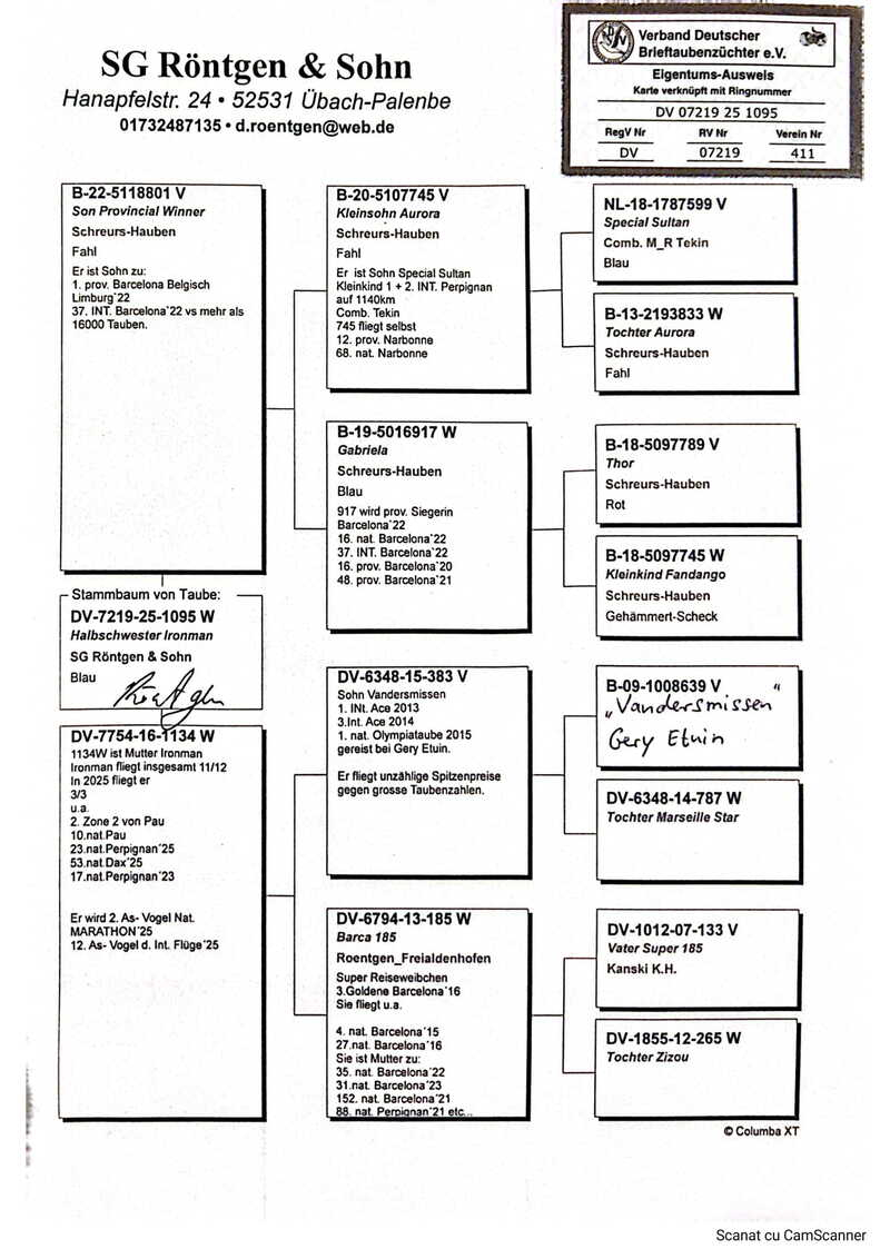Overall, Röntgen & Sohn represents a true model of modern pigeon sport, built on proven genetics, strict selection, and long-term vision. The pigeons of this loft are not the result of chance, but the expression of a deliberate, ambitious, and extremely well-conceived breeding program—a genuine benchmark in international marathon racing, often rightly referred to as Freialdenhofen 2.0.