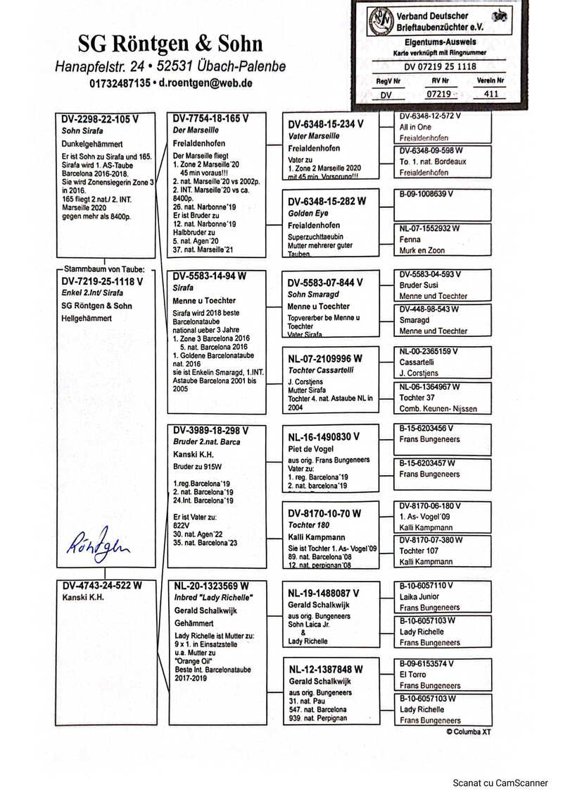 Overall, Röntgen & Sohn represents a true model of modern pigeon sport, built on proven genetics, strict selection, and long-term vision. The pigeons of this loft are not the result of chance, but the expression of a deliberate, ambitious, and extremely well-conceived breeding program—a genuine benchmark in international marathon racing, often rightly referred to as Freialdenhofen 2.0.