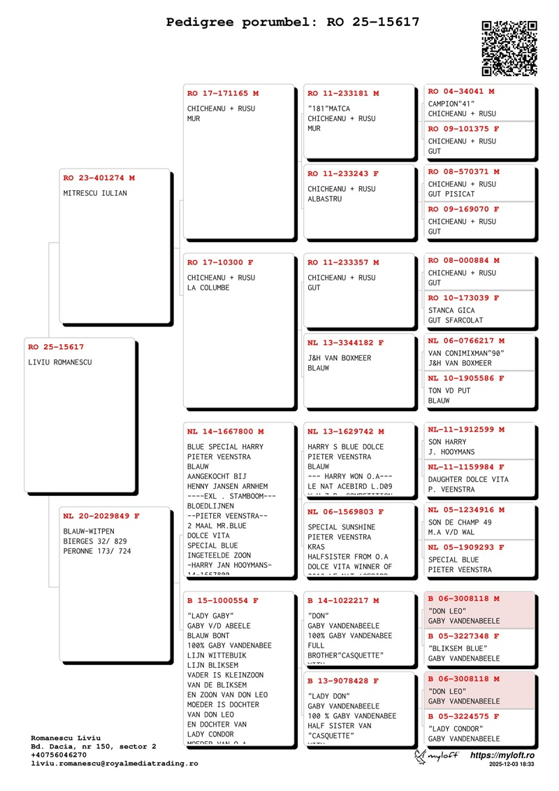 Romanescu Liviu, a passionate pigeon fancier from Bucharest, has been actively involved in pigeon racing competitions since 2019. From the very beginning, he approached this sport with seriousness and a long-term vision, focusing on building a strong loft based on top-quality genetics and rigorous selection. Over the years, he has strengthened his team through carefully selected acquisitions from renowned breeders in Europe and Romania, such as Cor de Heijde, Gerard Van Tuyl, Jellema, Kipp und Sohne, Etienne Meirlaen, Batenburg–Van de Merwe, Verweij – de Haan, Herbot Gebr., Krascu Alin, Magirescu Dan, Cobzaru Daniel, and other well-known breeders.