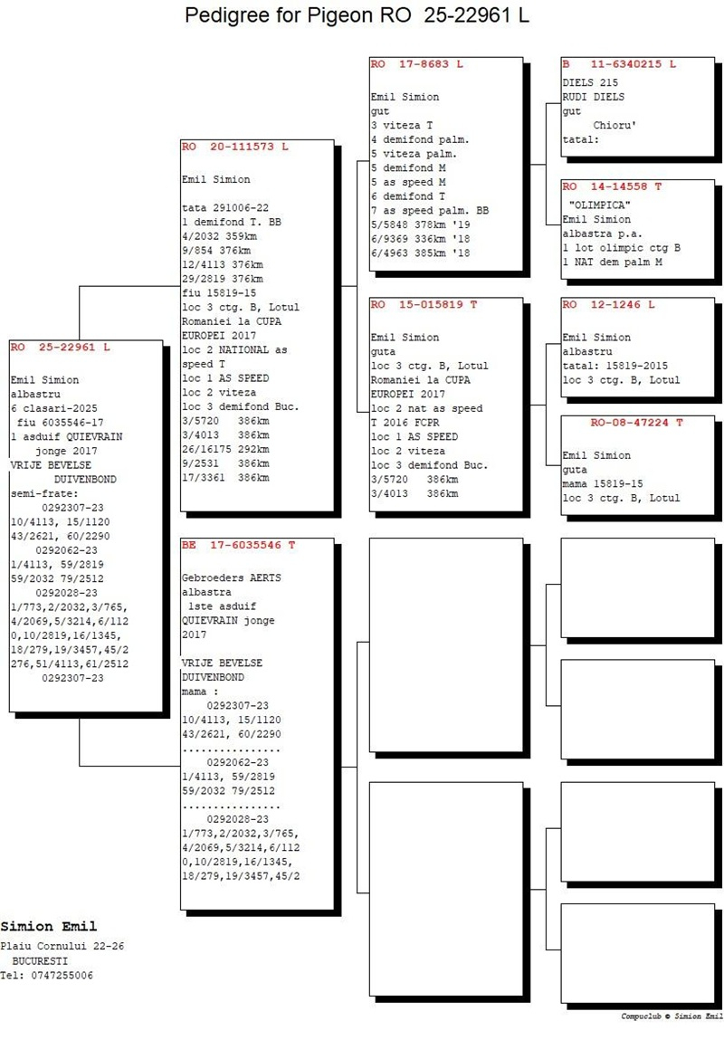 The Simion Emil & Stelian Dumitran tandem represents a benchmark of Romanian pigeon sport, built on the principles of continuity and proven performance over time. The results achieved by this tandem are not accidental, but rather the expression of constant work, rigorous selection, and the testing of pigeons exclusively in real competitions, carried out season after season.